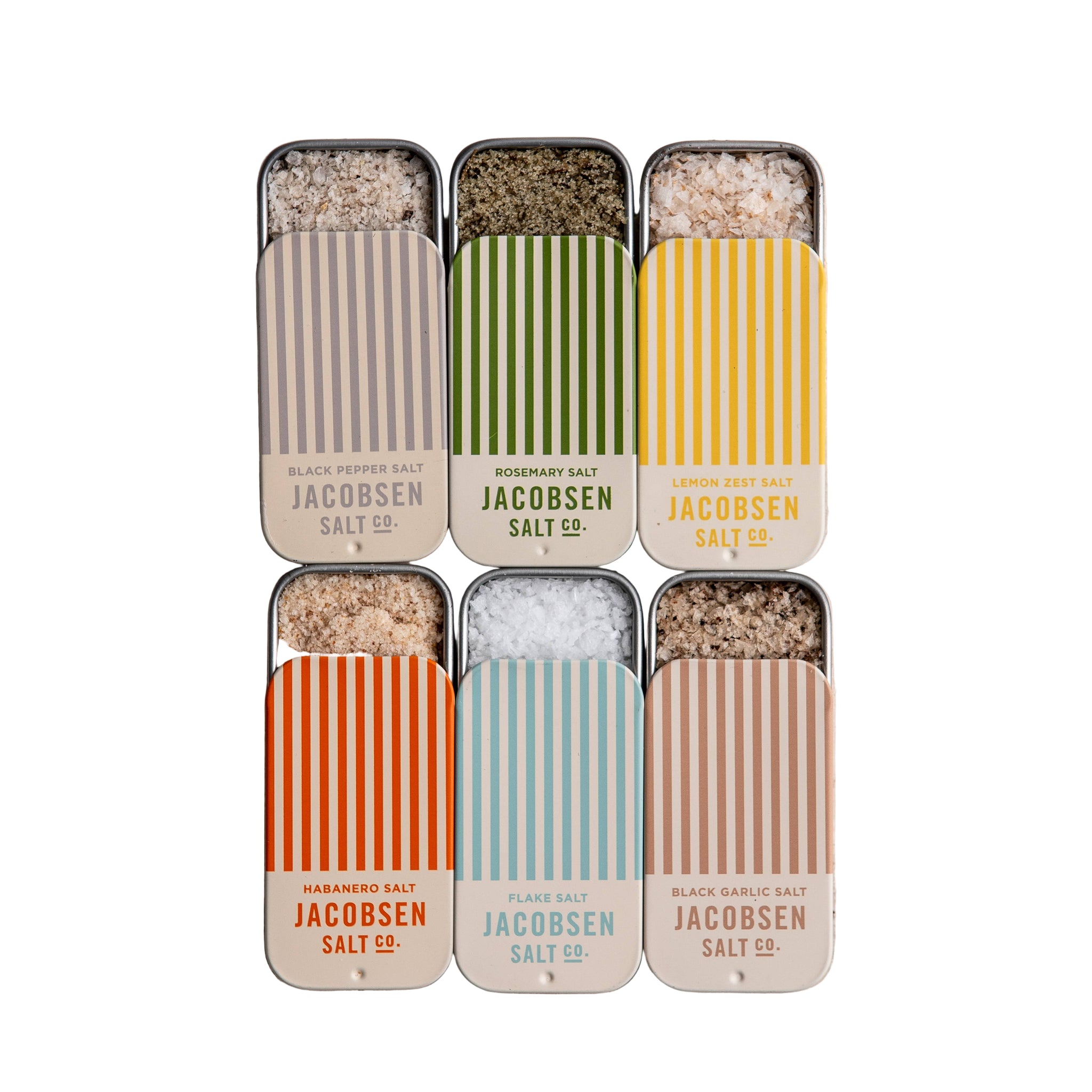 We've bundled our infused salt slide tins so you can collect them all, packed with five beloved infusions plus our Pure Flake Salt. The pocket salt that’s perfect for picnics, dining out, camping, or lunch on the go.