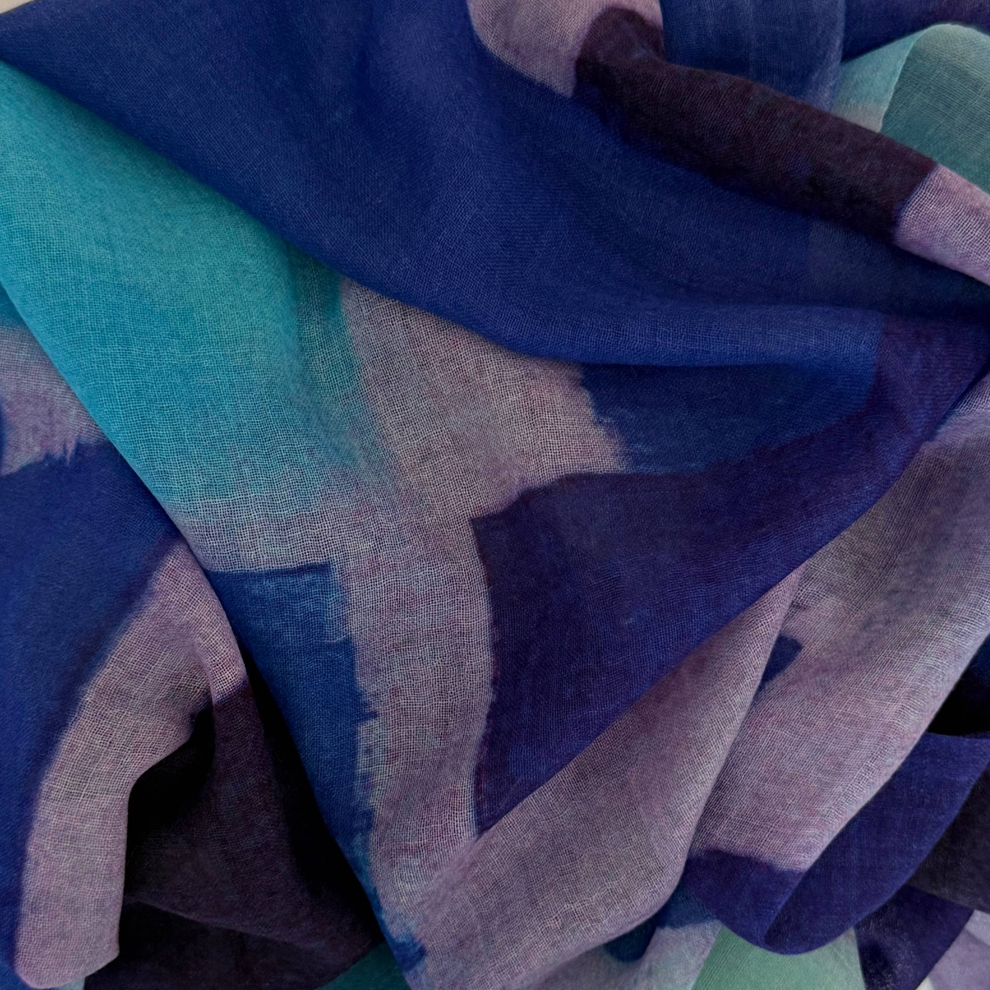 The Tyler scarf is part of our digitally printed Maia Collection. Tyler is printed on 90% Fine Wool/10% Silk. We love this fabric because it is comfortable to wear year round. Lightweight, breathable, and warm. -90% Wool/10% Silk -78"L x 28"W -Hand Wash or Dry Clean