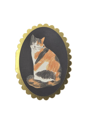 No. 27 Calico Cat Our mini card series features playful illustrations with gold foil scalloped edges. Each one is paired with a recycled grey flecked C7 envelope. Designed and printed in the UK on FSC certified papers