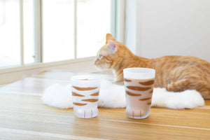 Cat paw glass in the design tabby with a small pink paw at the base. A lovely addition to your daily table, it’s sure to bring a touch of peace and happiness to your home. W2.79" x H5.59" (W75mm x H110mm) Made in Japan