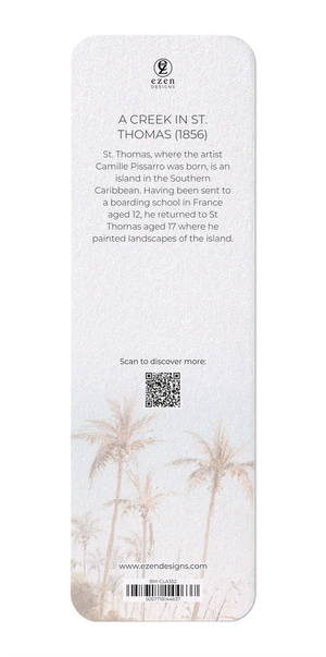 Text on the reverse side: St. Thomas, where the artist Camille Pissarro was born, is an island in the Southern Caribbean. Having been sent to a boarding school in France aged 12, he returned to St Thomas aged 17 where he painted landscapes of the island.