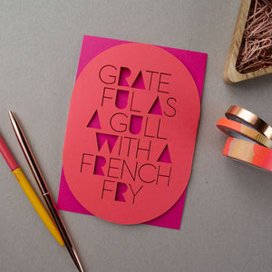 Why not send some humor with your gratitude? Here's a thank-you card they will save and remember. This two-piece number features a laser-cut design on an outer sleeve and a blank flat-card insert tucked inside. Write on back of insert and slide into sleeve. Presto! You've got a memorable expression of your thanks.