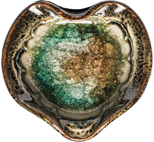 Handmade in Colorado with all natural materials and recycled glass! What will you use your little dish for? Teabags, incense, rings-n-things, candles, loose change, pills ...and many other uses! Sold in an even assortment of all our different shapes and colors. No two are exactly a like! Crackled glass is not food safe. Dishes are roughly 3.5" in diameter