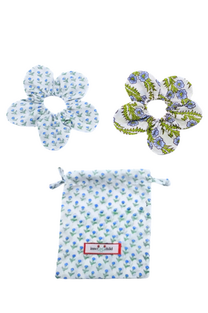 Experience the charm of handcrafted textile artistry with this set of two scrunchies made from soft, breathable 100% cotton. Each piece is meticulously block-printed by an eighth-generation artisan family in Jaipur, preserving a centuries-old tradition. Presented in a matching block print pouch, these 7.5-inch scrunchies combine practicality with elegant design, perfect for styling hair or accessorizing your wrist. By choosing this set, you support the revival of traditional crafts and the artisan communities dedicated to this heritage.